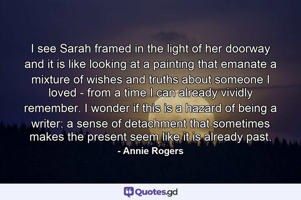 I see Sarah framed in the light of her doorway and it is like looking at a painting that emanate a mixture of wishes and truths about someone I loved – from a time I can already vividly remember. I wonder if this is a hazard of being a writer: a sense of detachment that sometimes makes the present seem like it is already past.