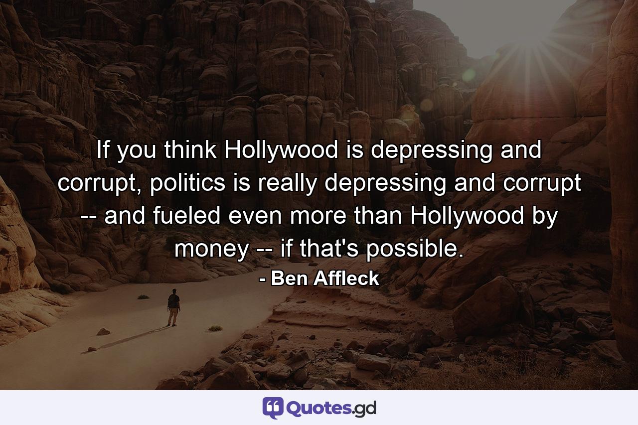 If you think Hollywood is depressing and corrupt, politics is really depressing and corrupt — and fueled even more than Hollywood by money — if that’s possible.