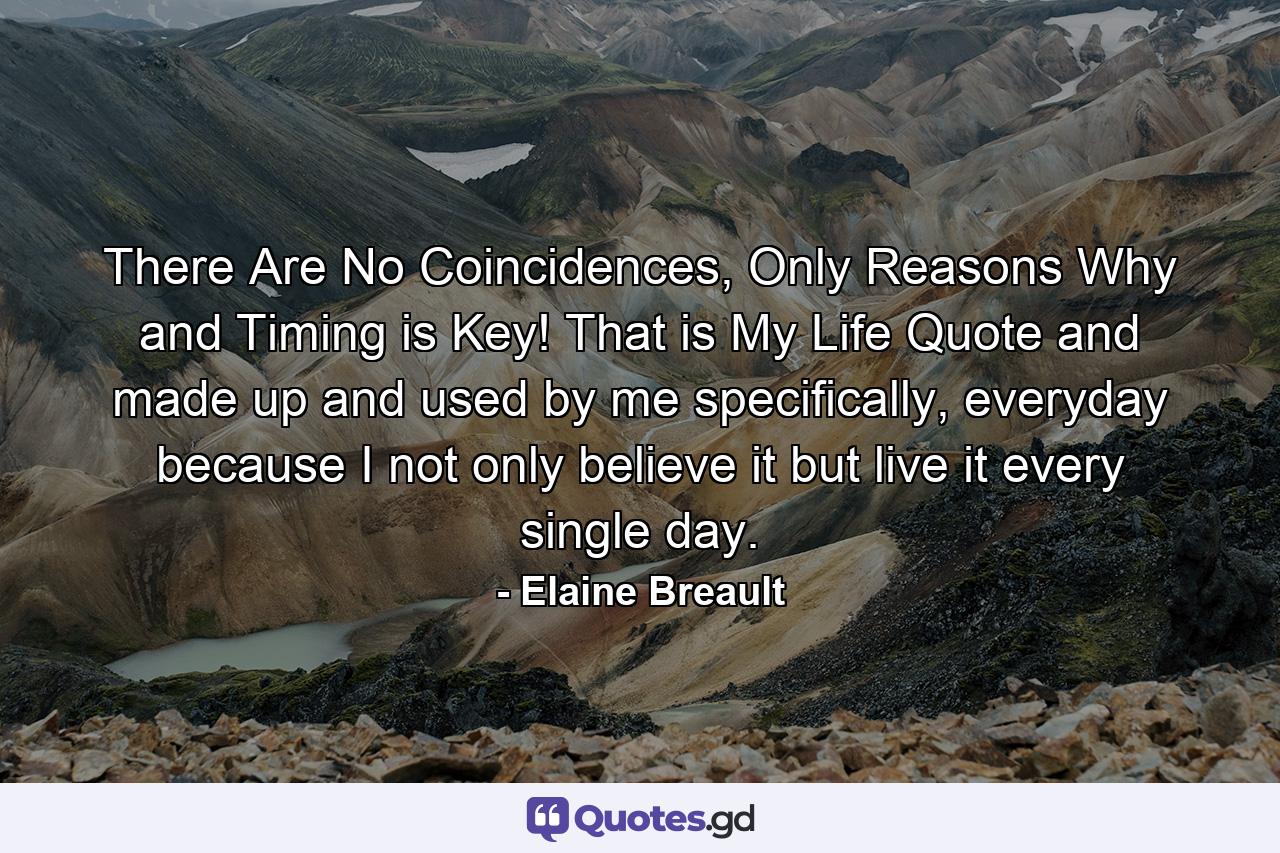 There Are No Coincidences, Only Reasons Why and Timing is Key! That is My Life Quote and made up and used by me specifically, everyday because I not only believe it but live it every single day.