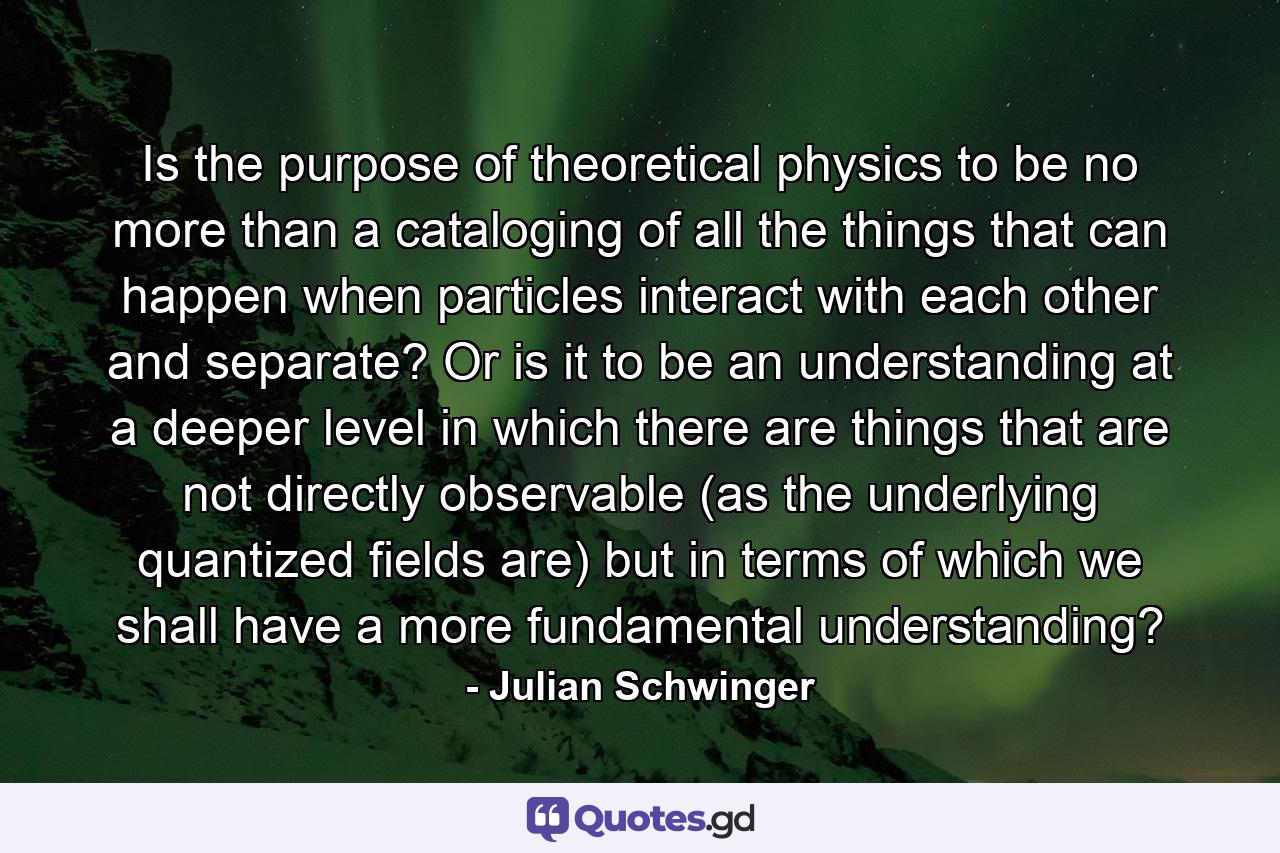Is the purpose of theoretical physics to be no more than a cataloging of all the things that can happen when particles interact with each other and separate? Or is it to be an understanding at a deeper level in which there are things that are not directly observable (as the underlying quantized fields are) but in terms of which we shall have a more fundamental understanding?