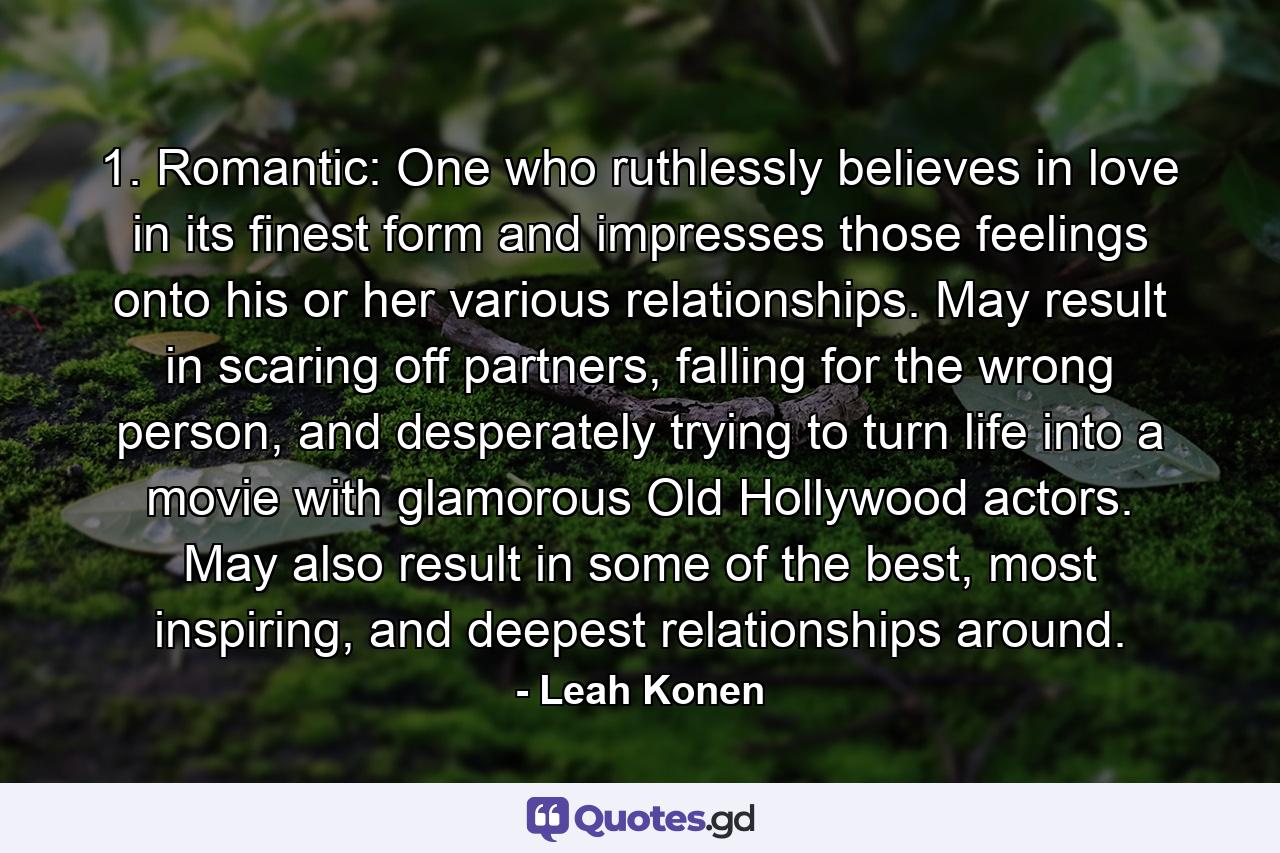 1. Romantic: One who ruthlessly believes in love in its finest form and impresses those feelings onto his or her various relationships. May result in scaring off partners, falling for the wrong person, and desperately trying to turn life into a movie with glamorous Old Hollywood actors. May also result in some of the best, most inspiring, and deepest relationships around.