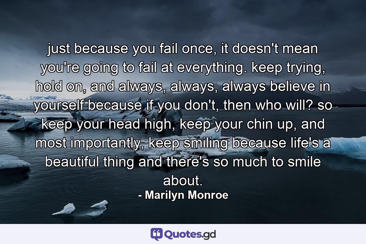 just because you fail once, it doesn’t mean you’re going to fail at everything. keep trying, hold on, and always, always, always believe in yourself because if you don’t, then who will? so keep your head high, keep your chin up, and most importantly, keep smiling because life’s a beautiful thing and there’s so much to smile about.