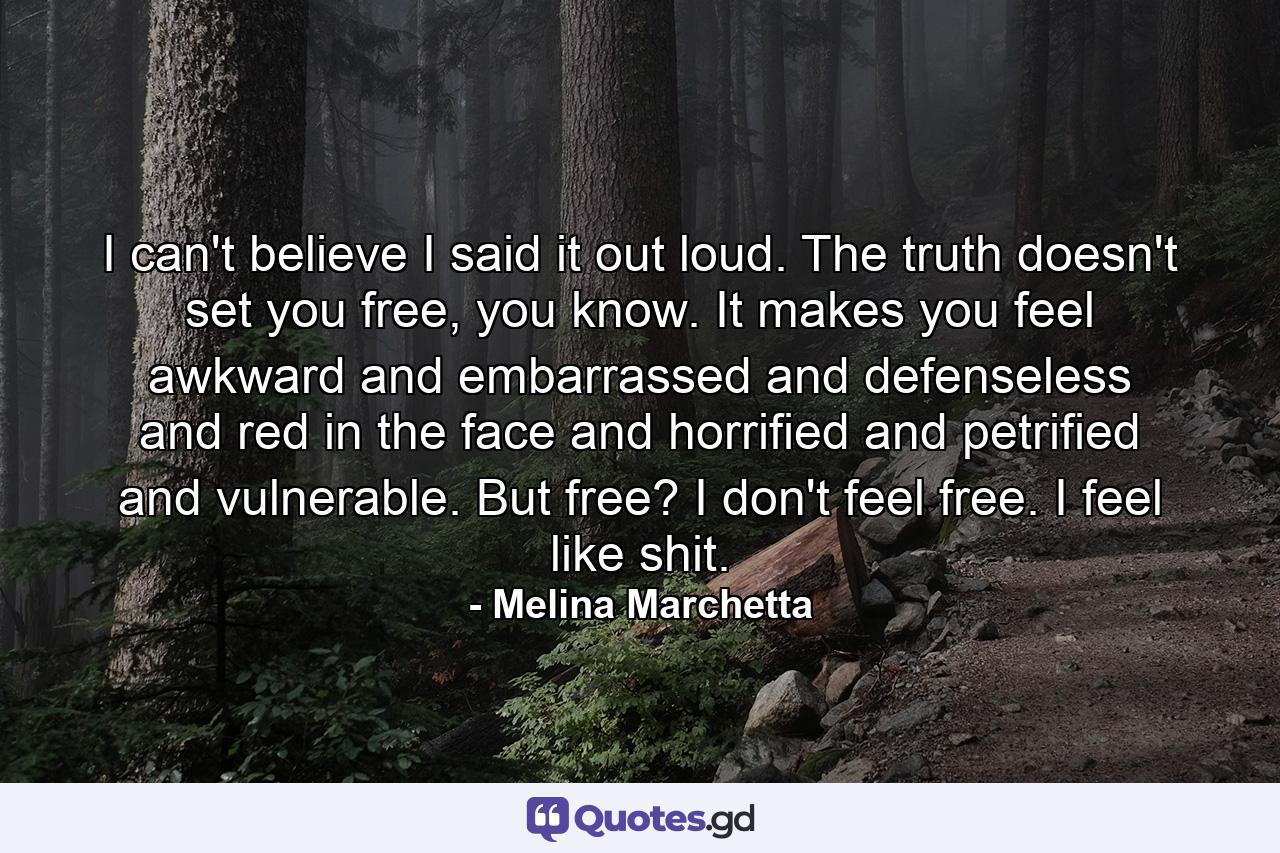 I can’t believe I said it out loud. The truth doesn’t set you free, you know. It makes you feel awkward and embarrassed and defenseless and red in the face and horrified and petrified and vulnerable. But free? I don’t feel free. I feel like shit.