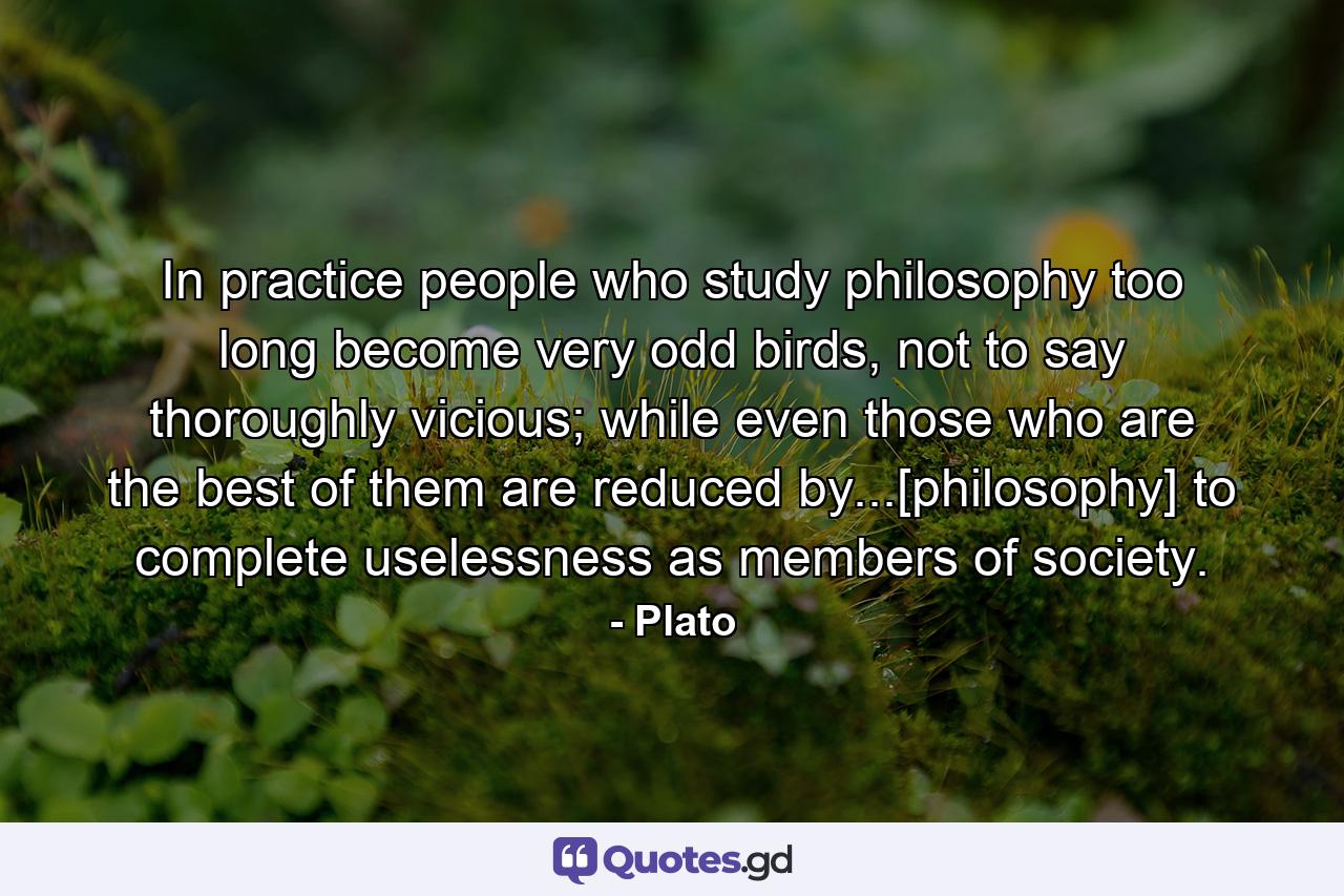 In practice people who study philosophy too long become very odd birds, not to say thoroughly vicious; while even those who are the best of them are reduced by…[philosophy] to complete uselessness as members of society.