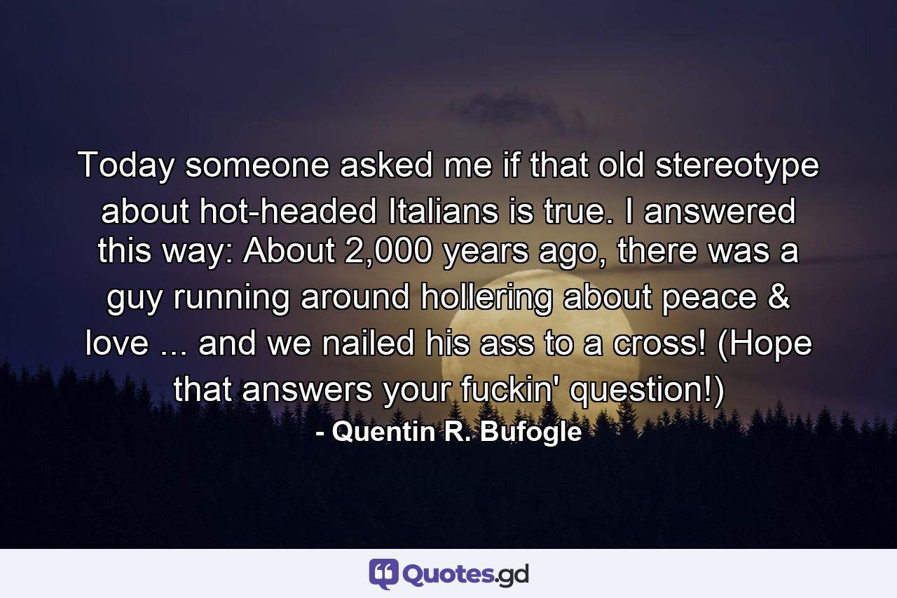 Today someone asked me if that old stereotype about hot-headed Italians is true. I answered this way: About 2,000 years ago, there was a guy running around hollering about peace & love … and we nailed his ass to a cross! (Hope that answers your fuckin’ question!)