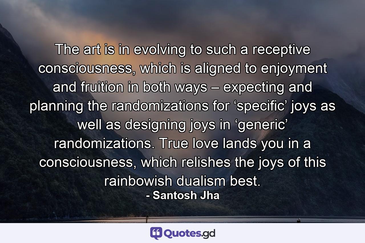 The art is in evolving to such a receptive consciousness, which is aligned to enjoyment and fruition in both ways – expecting and planning the randomizations for ‘specific’ joys as well as designing joys in ‘generic’ randomizations. True love lands you in a consciousness, which relishes the joys of this rainbowish dualism best.