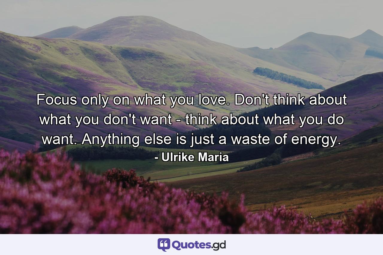 Focus only on what you love. Don’t think about what you don’t want – think about what you do want. Anything else is just a waste of energy.